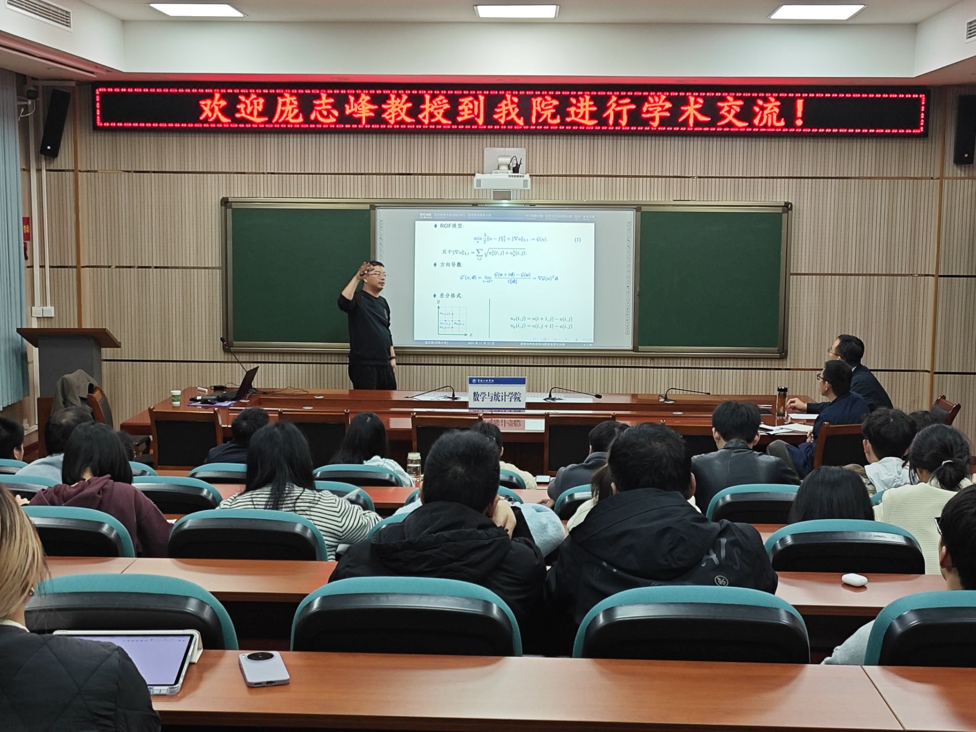 在讲座中,庞教授系统阐述了图像复原与分割技术在医学影像领域的关键作用与发展前景。他详细介绍了退化模型、ROF模型及其改进形式、正则化模型与参数化模型等重要方法的演进历程,分析了各类模型的优势与局限。此外,他还重点探讨了如何利用图像结构先验信息——如模型的离散方法与图像的几何结构特征——构建高效的图像复原与分割模型。