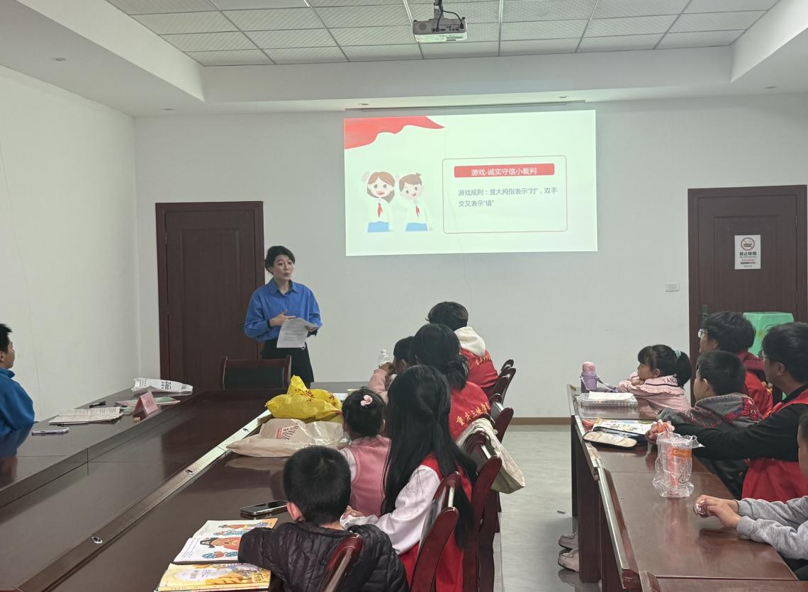 为了将修德与诚信的种子播撒进学生心中,引导少年儿童以良好品格助力强国建设,数学与统计学院(三峡大数据学院)学生第三党支部于2025年11月2日走进社区,面向中小学生开展“修德诚信并肩行,青春强国勇担当”主题宣讲活动。活动通过图文讲解、观看视频、互动问答等形式,带领学生们在修身立德中锚定“强国有我”的青春航向。