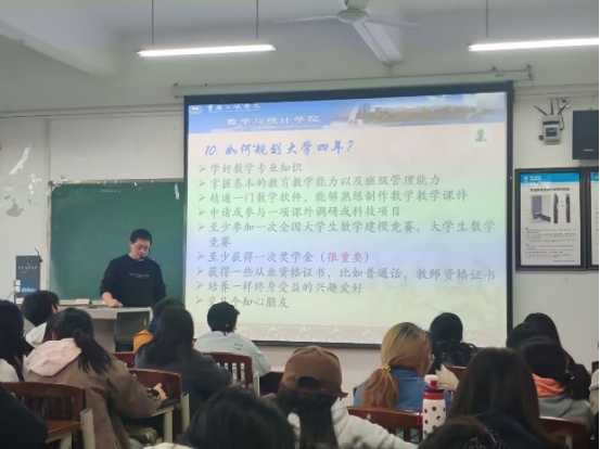 数学与应用数学(师范类)专业系主任陈彦恒围绕十大关键问题,阐述“数理基础+教育理念”的培养模式;信息与计算科学专业系主任王松柏鼓励学生立足区域、锤炼实践能力;统计学专业系主任左占飞详解专业课程与升学就业导向;大数据管理与应用专业系主任李祖雄强调“理论+实践”,凸显专业跨学科、高需求优势。