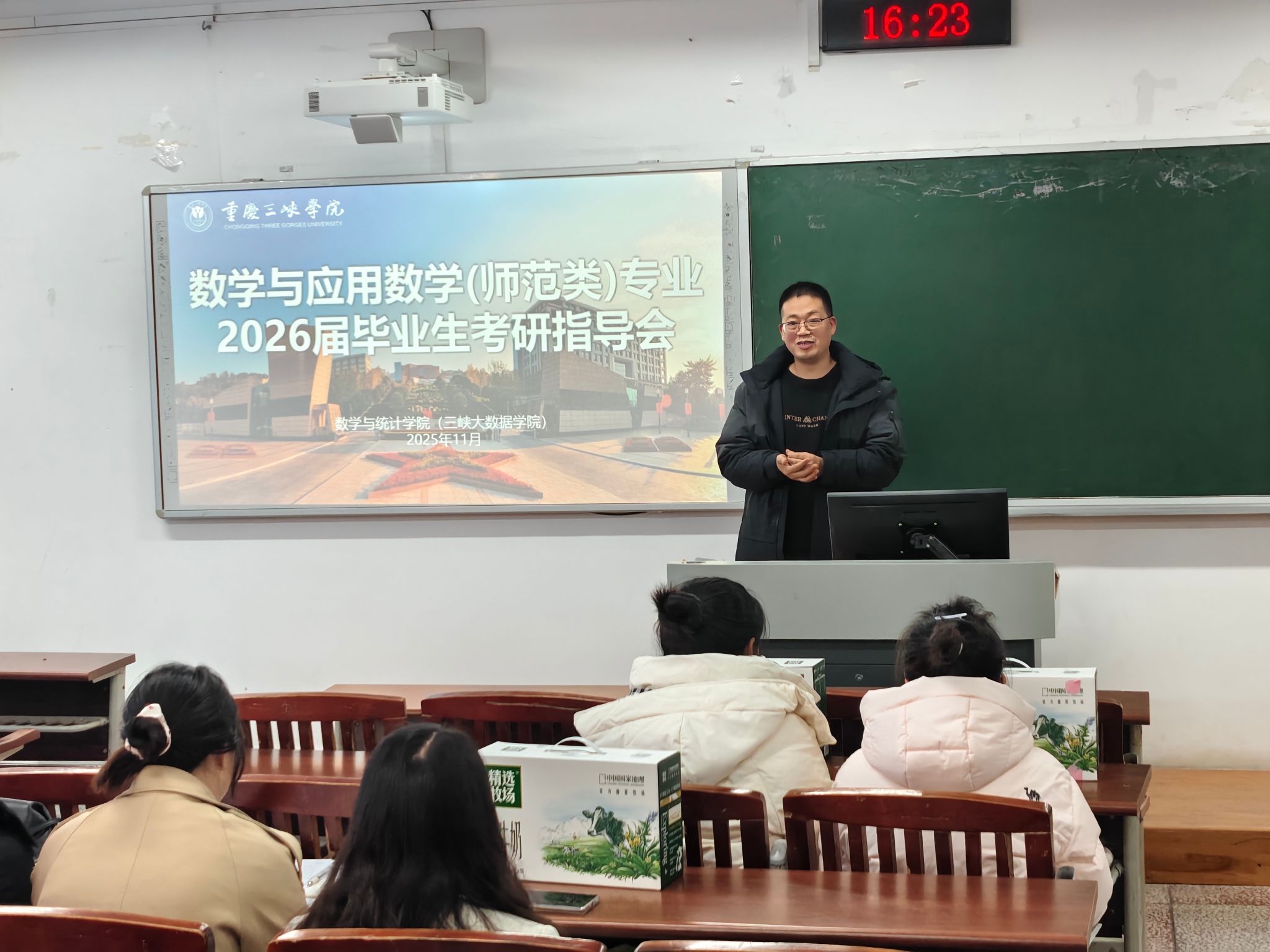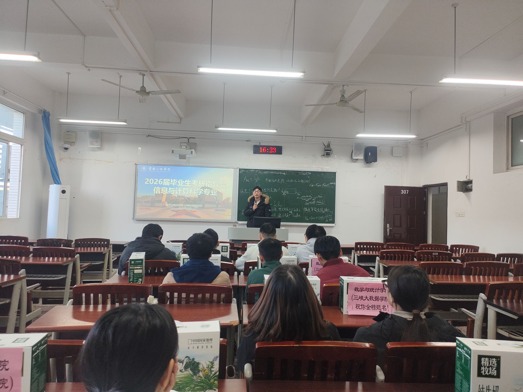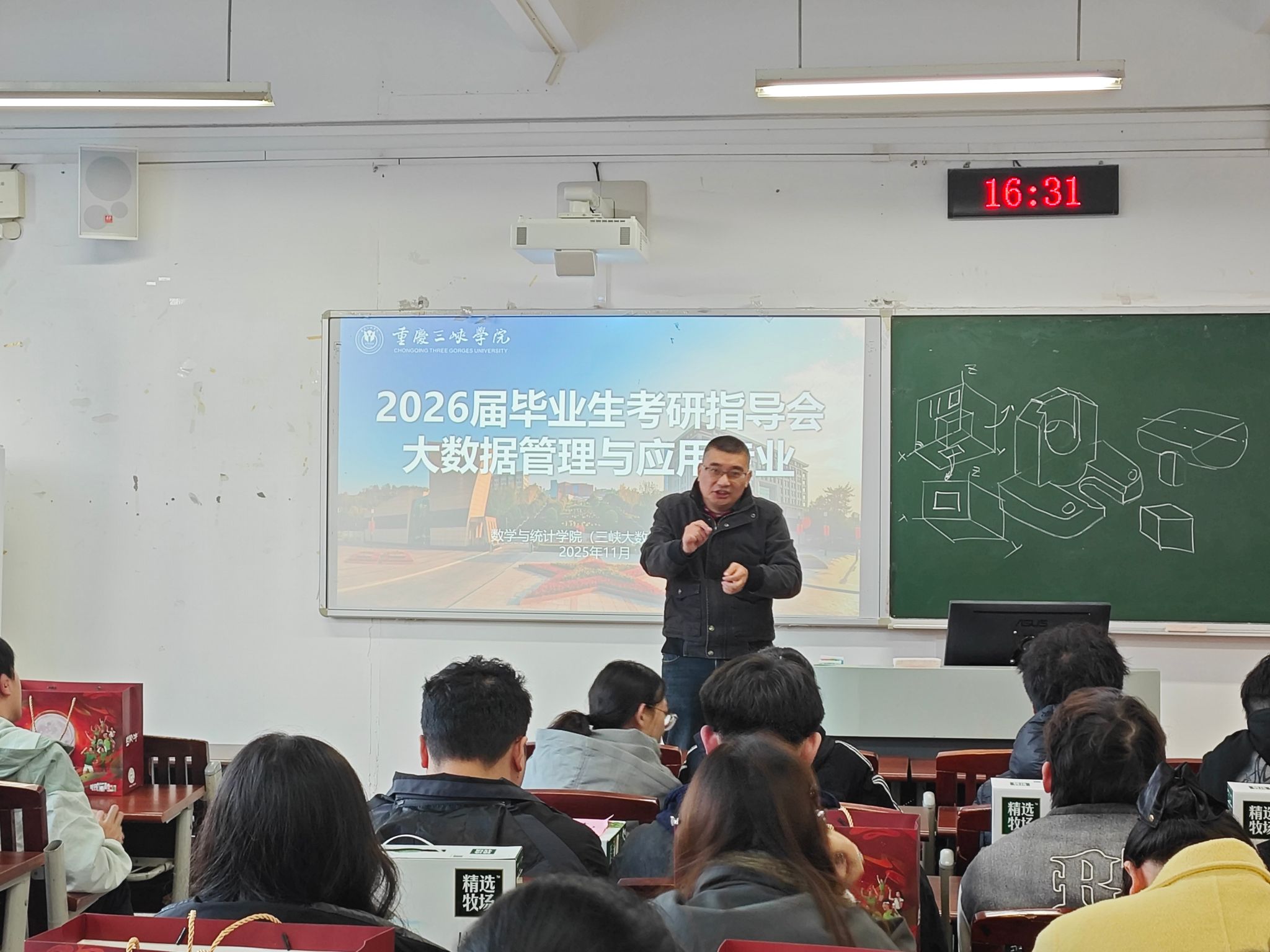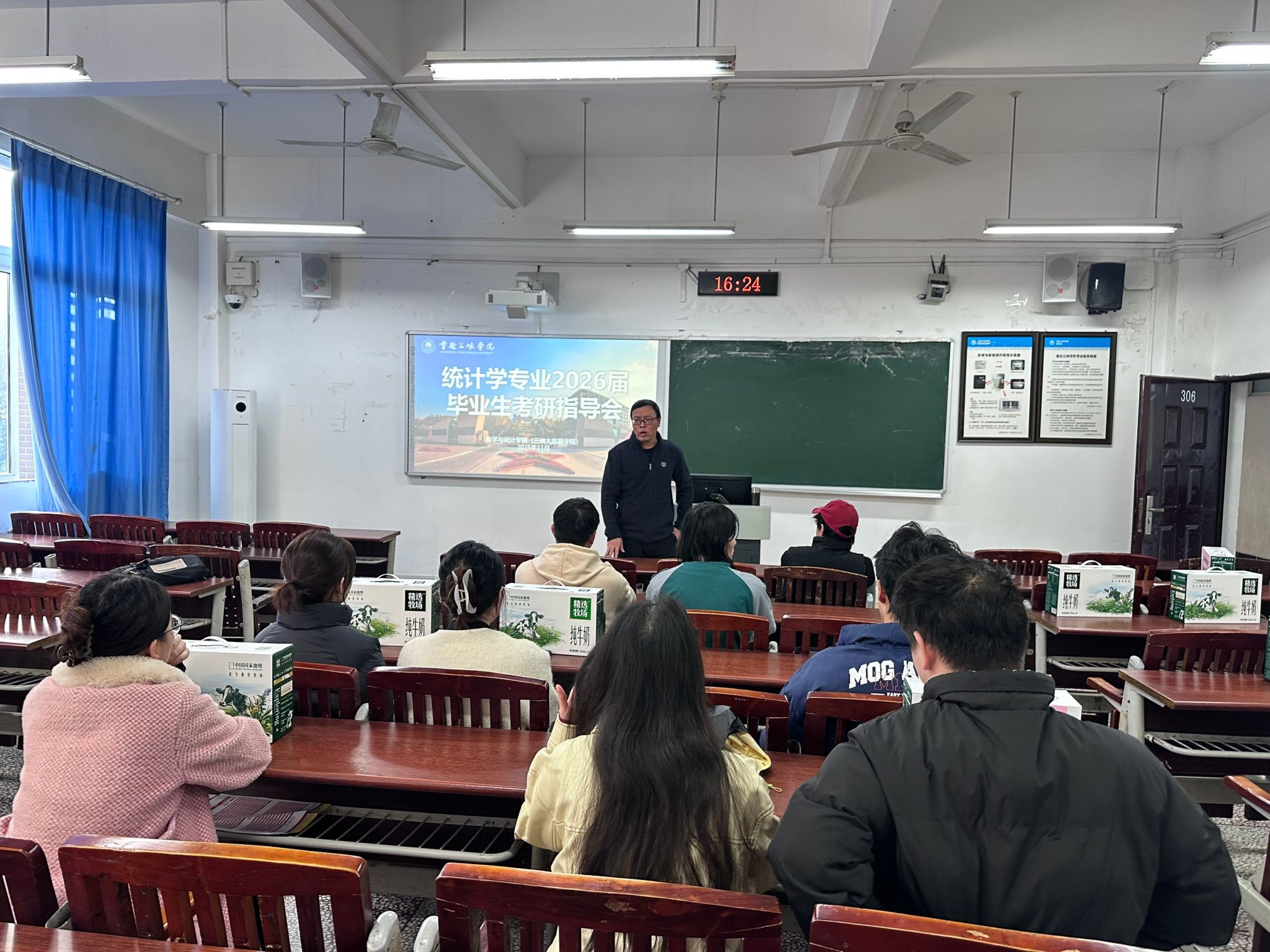 为鼓舞考研学子士气,坚定备考信心,帮助同学们科学调整心态、优化复习策略,11月27日,数学与统计学院在明辨楼306、307、308、309教室分专业开展2026届毕业生考研交流指导。数学与应用数学(师范类)系主任陈彦恒、统计学系主任左占飞、大数据管理与应用系主任李祖雄、信息与计算科学系主任王松柏及专业教师陶龙坤共同参与指导,各专业共计100余名考研学子到场学习交流。